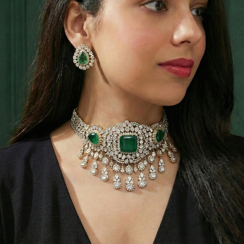 Emerald Diamond Choker Set