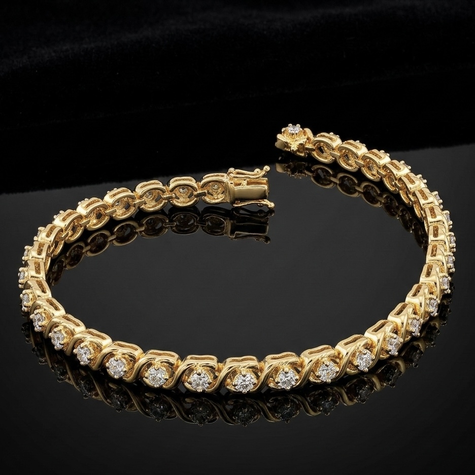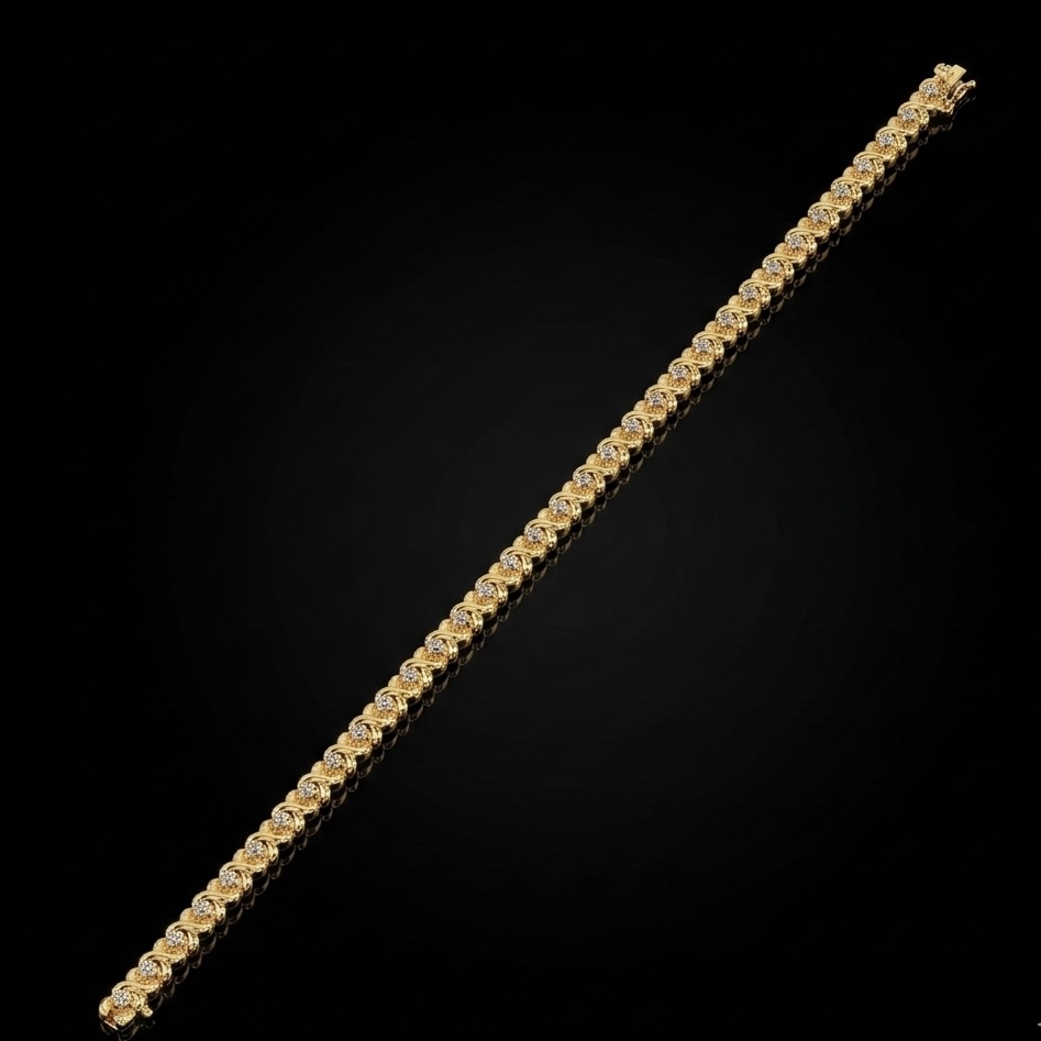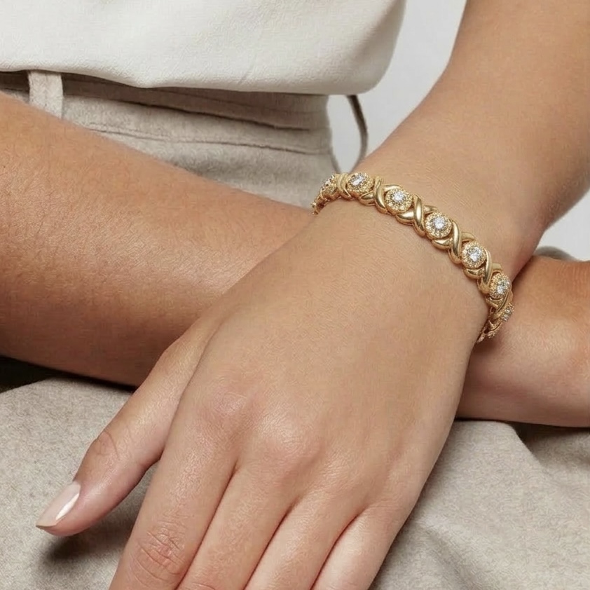 A perfect harmony of warm gold and brilliant light. This bracelet weaves sparkling diamond clusters with graceful golden knots, symbolizing an unbreakable bond of elegance and grace. A regal addition to your everyday luxury.