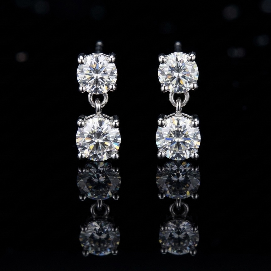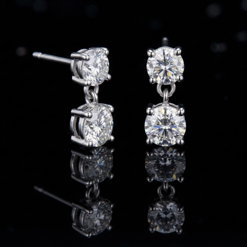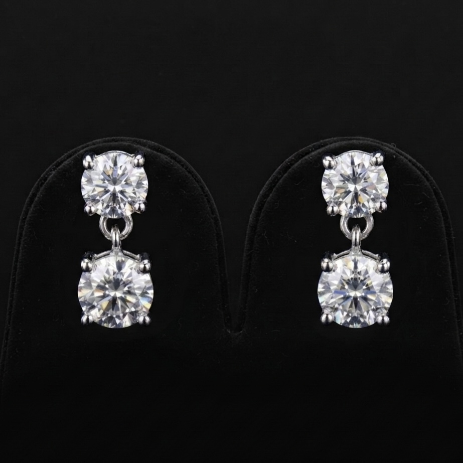 A rare blessing suspended in light. These elegant drop earrings feature brilliantly matched round diamonds that catch the light with every subtle movement. A minimalist yet powerful statement of pure, effortless grace.