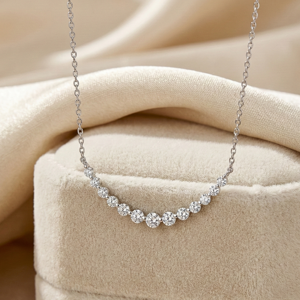 Bold, luxurious, and unmistakably grand. Each cushion-cut diamond in this chain is wrapped in a halo of brilliance, accented with a hint of gold for that regal two-tone finish. It wraps you in an unbroken circle of luxury, designed to make you feel like a queen every time you wear it.