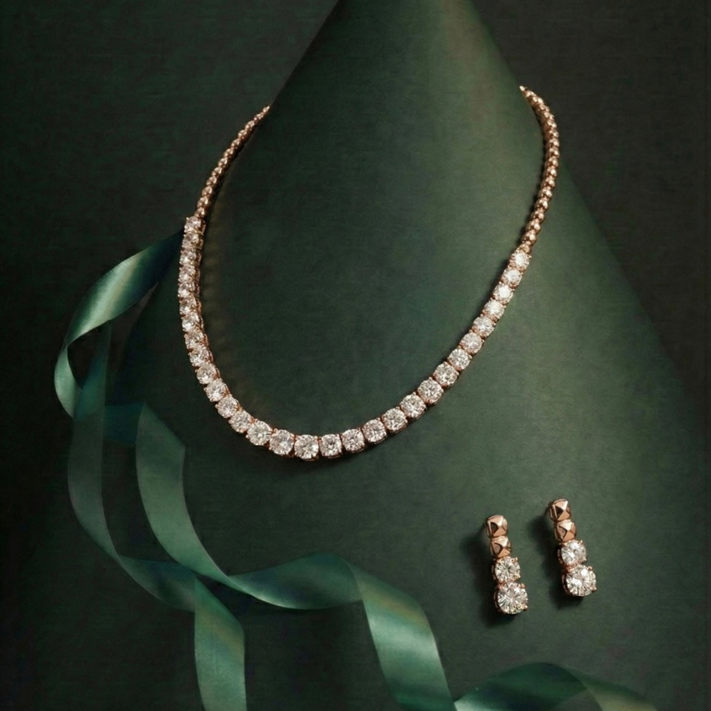 Graceful and understated, this single-line solitaire necklace celebrates the beauty of simplicity. Designed to sit perfectly along the neckline, it adds a soft yet striking sparkle that complements both everyday wear and special occasions. A timeless essential, this necklace is ideal for those who appreciate clean design with effortless elegance.