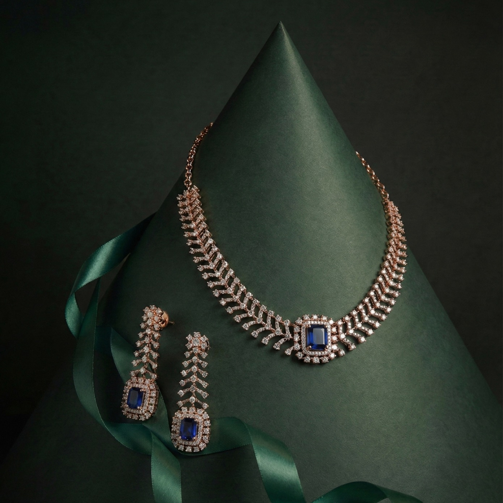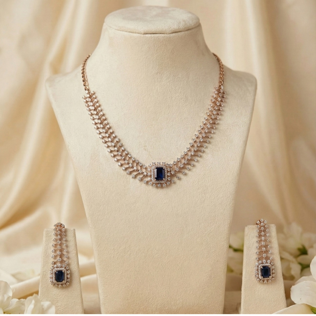 This versatile necklace set is designed for those who love variety without compromising on elegance. Featuring a beautifully crafted necklace with a changeable centre stone, it allows you to switch between rich sapphire, classic ruby, or timeless emerald tones—depending on your mood or occasion. Paired with matching earrings, this set offers flexibility, individuality, and refined luxury in one statement piece.